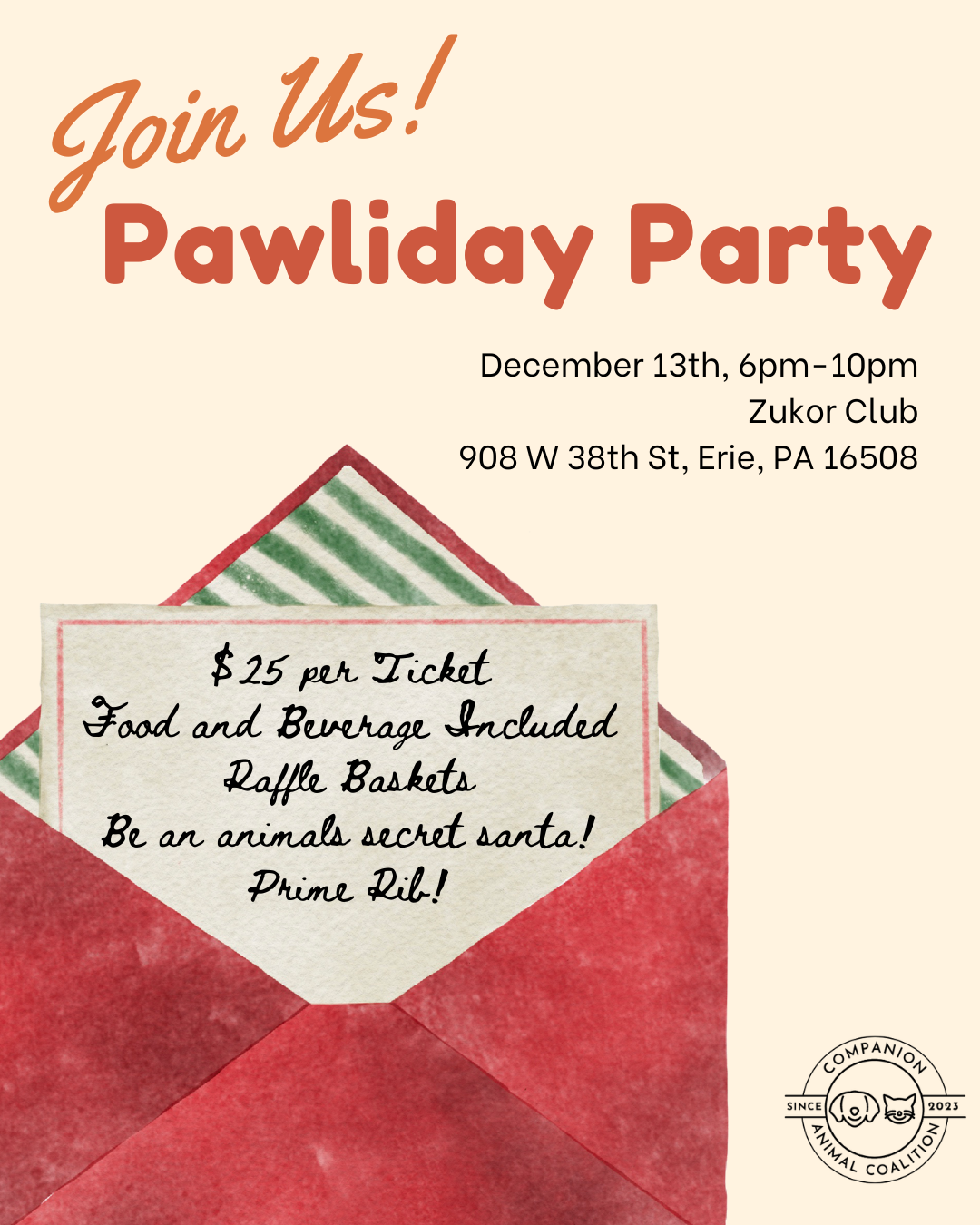 You’re invited to our Pawliday Party – a festive evening to support our furry friends! 🎁❀️